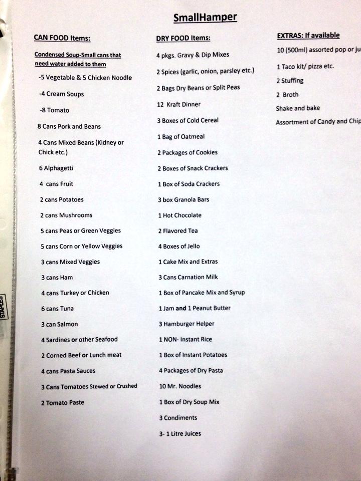 Also, see Wood Buffalo Food Bank website below for current need items.