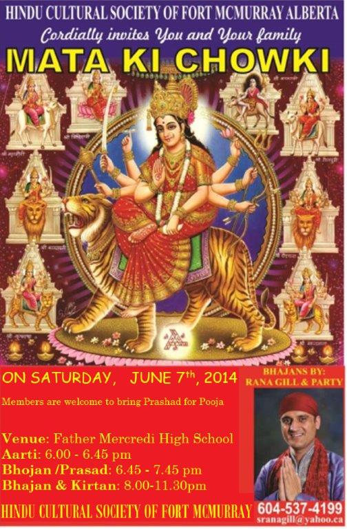 Hindu Cultural Society cordially invites you and your family to Mata ki Chowki andShirdi Sainath Bhajans.